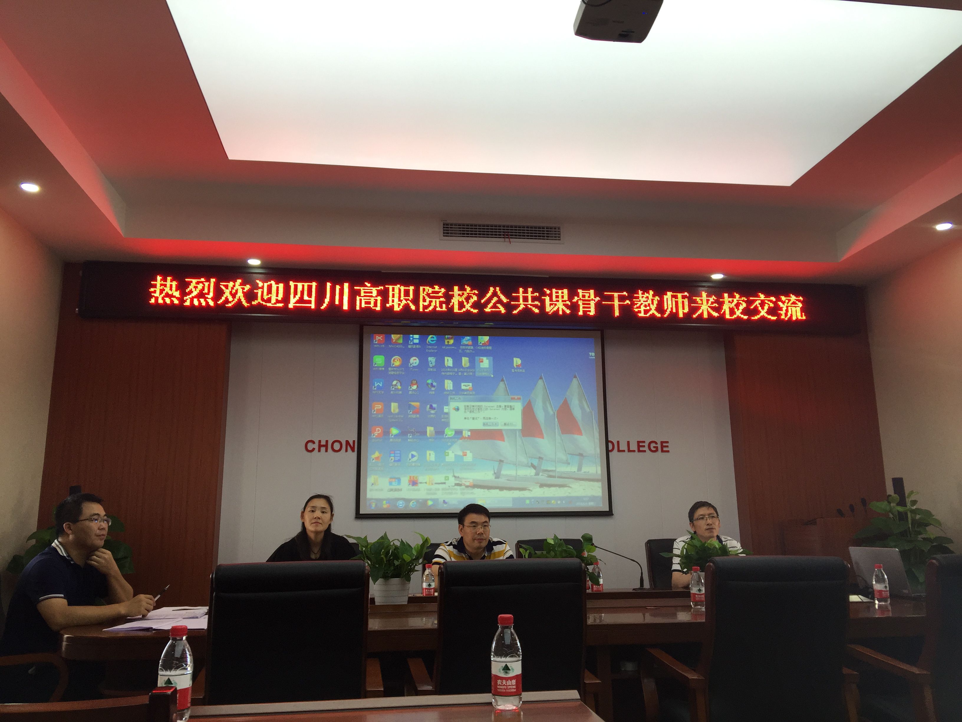 6月6日上午9点,来自四川各高职院校的数十名教师来公司博学馆607会议室开展公共课教学研讨交流会。基础部副主任陈浩,思政、英语、体育教研室的司玉兰、张前蓉、唐流泉三位教研室主任参会。