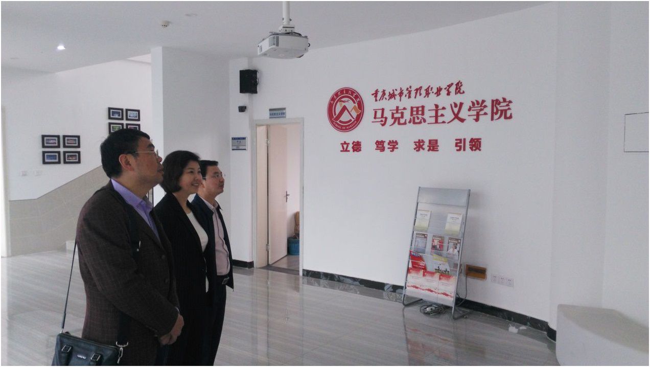 在上午的座谈会上,重庆城市管理职业公司党委副书记张新,宣传部长、马克思主义公司经理喻永均等对刘仲全一行到访表示热烈欢迎,详细介绍了马克思主义公司的定位职责、机构构架、队伍建设、团队培训管理和教学改革措施,特别就马克思主义公司教师“三联系三兼任”、“专题化、网络化、项目化”的“三化”的教学举措进行全面的介绍。双方还就教学课程结构、教学成果检验方式、团队队伍建设等方面进行深入沟通,就下一步合作达成初步共识。会后,刘仲全一行参观了重庆城市管理职业公司马克思主义公司、睿德思想政治教育中心等部门单位。