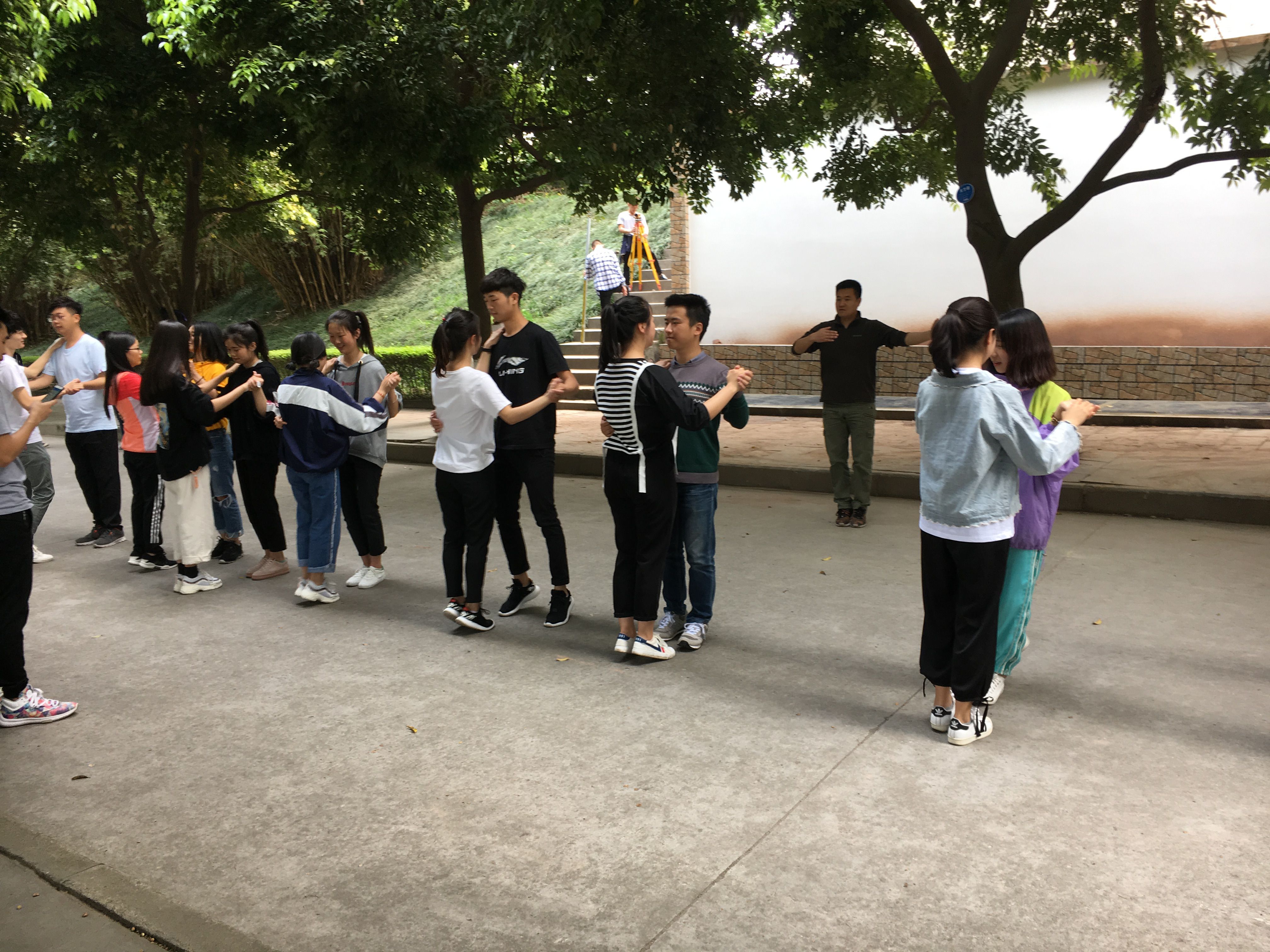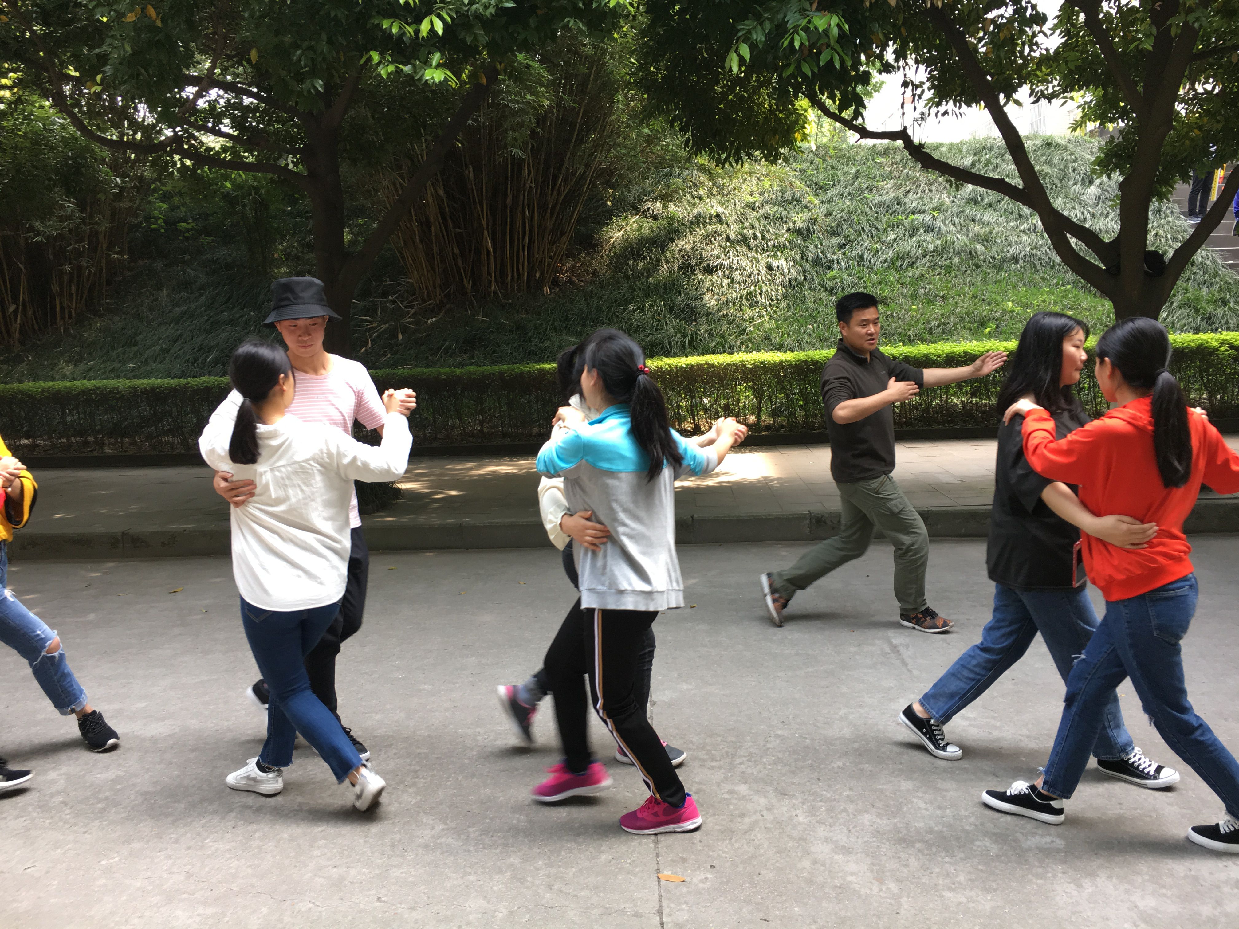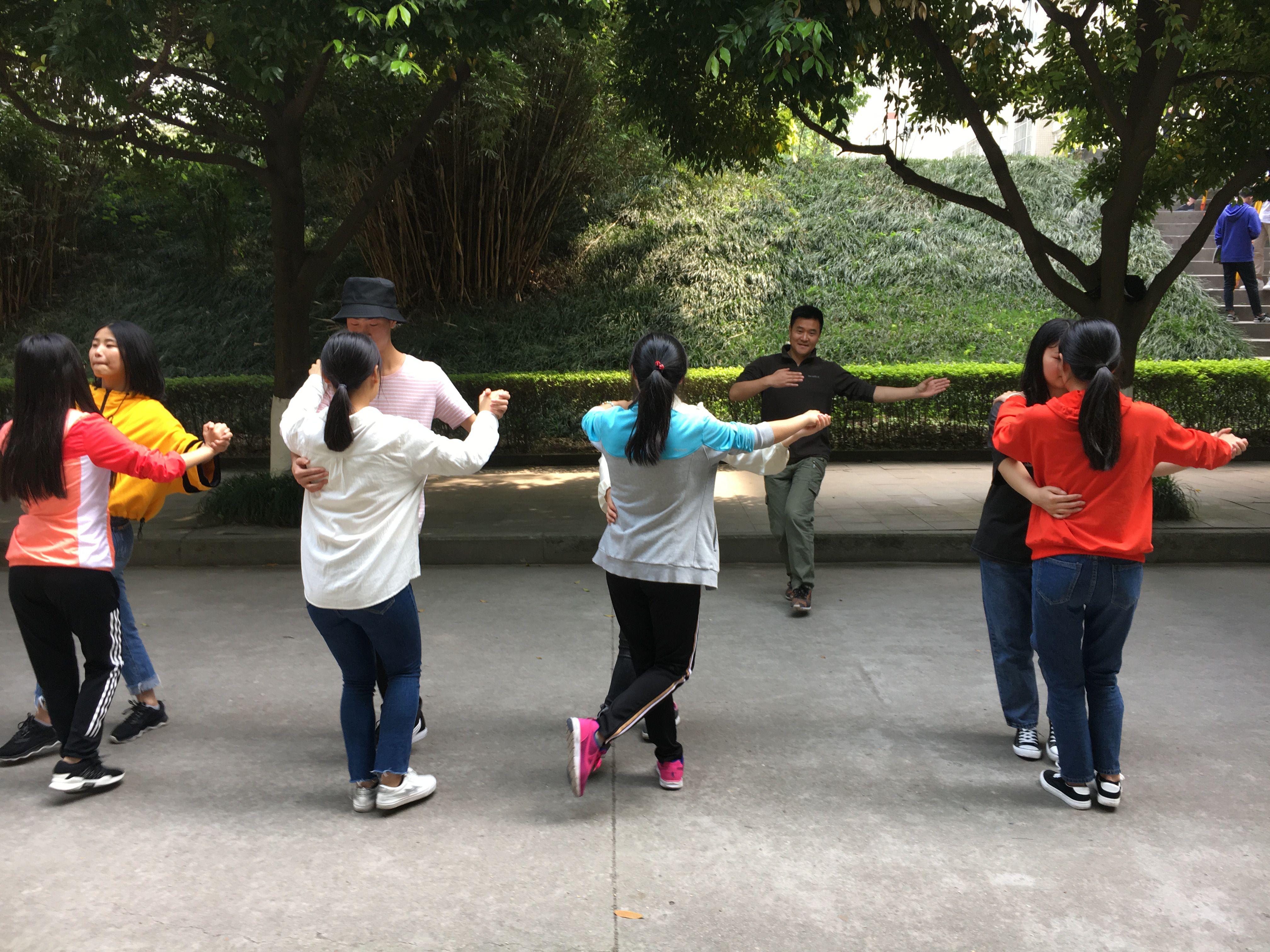 同学们兴趣很高,积极性和主动性很强,在每周仅有的一节体育课上,同学们已经初步学会了华尔兹步伐。