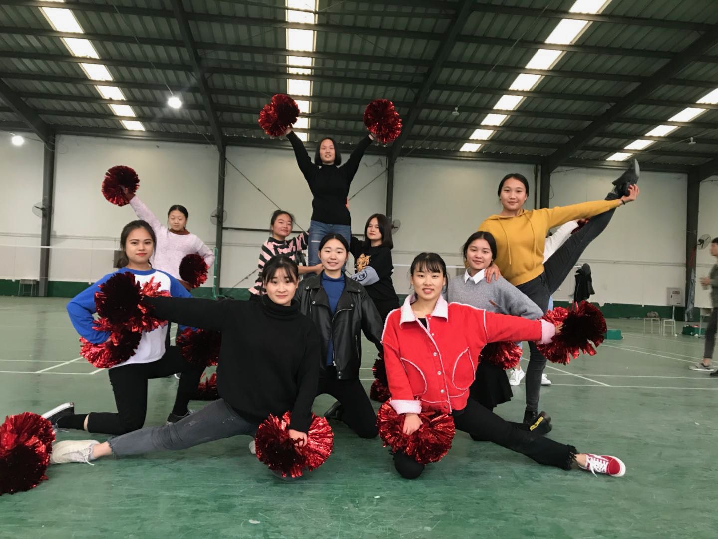 鲜花队和啦啦操队训练一瞬